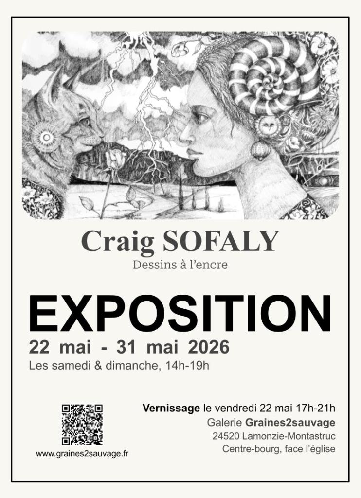 Exposition du 22 au 31 mai 2026 des œuvres de l’artiste contemporain Craig Sofaly, à l’espace galerie Graines2sauvage, à Lamonzie-Montastruc. L’artiste présentera ses dernières créations, évocations de paysages, d’animaux intégrant parfois des portraits dans un univers tendant vers le fantastique.
